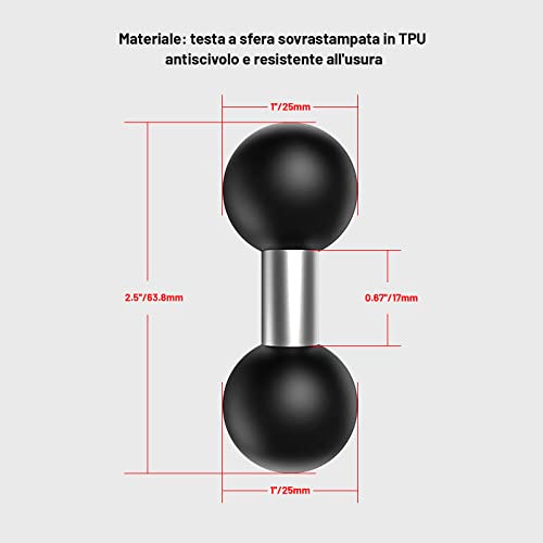*** Questo supporto a doppia sfera è da 25,4 mm (1 pollice) testa sferica fino a 25,4 mm, compatibile con bracci di base RAM da 25,4 mm a 25,4 mm.