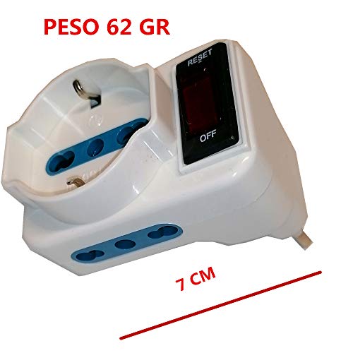 MAX8 Adattatore con Spina Piccola 10A Bianco con Interruttore, 2 prese 10/16A e 1 presa Schuko 10/16A, con protezione sovraccarico