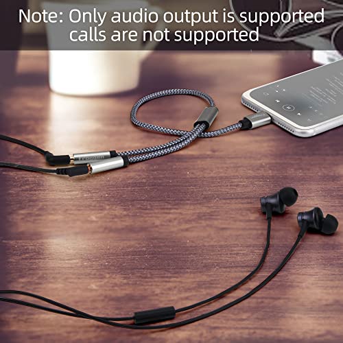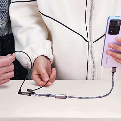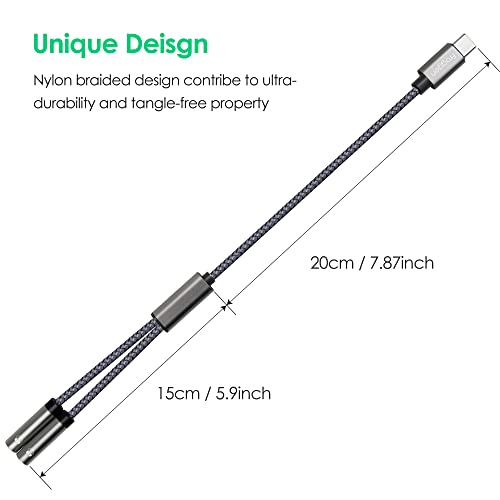 Design flessibile in nylon: questo splitter aux da USB-C a doppio jack da 3,5 mm utilizza un'interfaccia in lega e un cavo di rame di alta qualità per garantire una resistenza elevata, durata e senza grovigli. Il nylon intrecciato ad alta resistenza offre una buona funzione di resistenza anti-tiraggio. Il guscio in alluminio di alta qualità rende il cavo più resistente, resistente all'usura, alla corrosione e anti-interferenze. Include anche una lenza, che lo rende ancora più resistente.