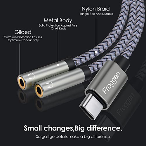 Splitter Y per audio USB C: questo splitter per cuffie USB C converte il segnale da una porta USB di tipo C in due porte femminili Aux da 3,5 mm. Condividi la musica, i film e i video con i tuoi amici, familiari o cari, tutti dalla stessa fonte del dispositivo. È perfetto per passare del tempo durante viaggi e voli.