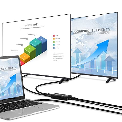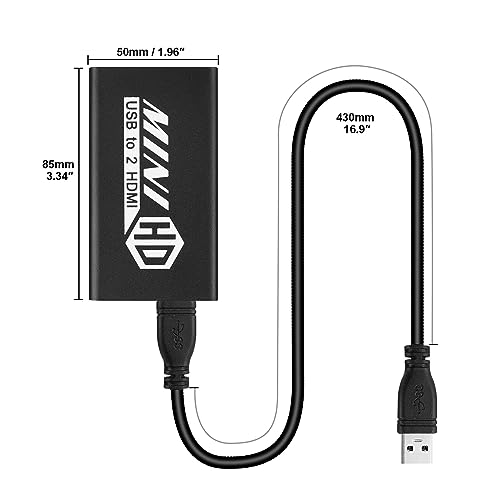 L'adattatore da USB 3.0 a HDMI supporta prese da 3,5 mm e il doppio convertitore HDMI 1080p @ 60Hz può estendere due diversi display, compatibili con Windows, MacBook e Chromebook.