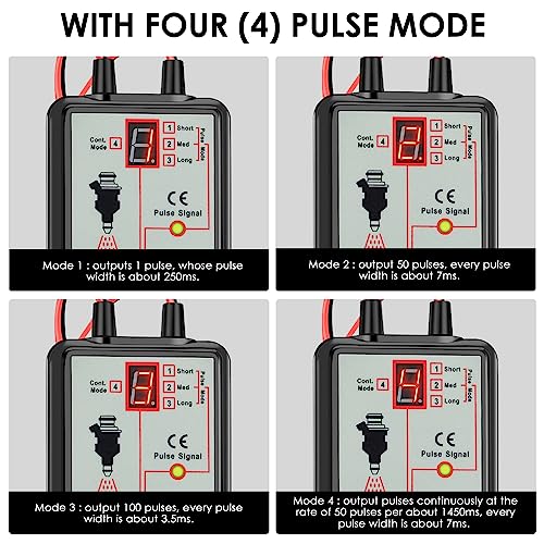 Tester pressione carburante: il tester per iniettori ha 4 modalità di impulso e nella modalità di lavoro continuo (modalità 4), può aiutarti a identificare l'iniettore buono o meno quando spegni il motore