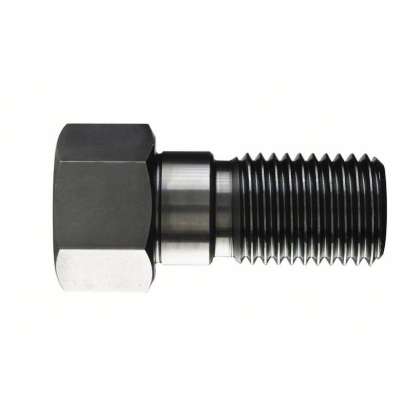 Adattatore per trapani diamantati. Accessori per sistemi di perforazione diamante Bosch. Adattatore Lato macchina da 5/8 di pollice 16 UNF. Adattatore lato corona 1 1/4 di pollice UNC. Parte e strumenti di sistema per lavori ottimale sul cantiere.
