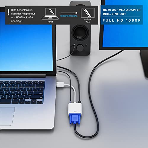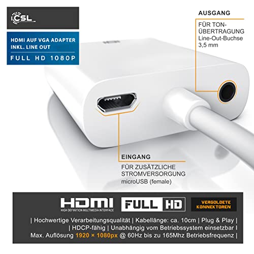 CSL - Adattatore da HDMI a VGA Full HD con trasmissione audio, cavo convertitore, supporto fino a 1080p HDTV, digitale a analogico, bianco