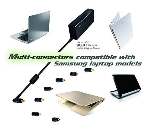 Compatibilità: questo caricatore CA è stato testato e convalidato per garantire che sia compatibile con tutte le serie di notebook Samsung: Notebook 5, Notebook 7, Notebook 9, Notebook 9 Pen, Notebook Odyssey, ATIV Book 2, 4 1TB HDD, 6 1TB HDD, 7, 8 1TB Full HD, 9 Lite Touchscreen PC, 9 Plus QHD Touchscreen, Chicony, Chromebook Series 5, DELTA, Metrobook, NB, NC, Netbook, PRO, Series 5, Series 5 Slim,