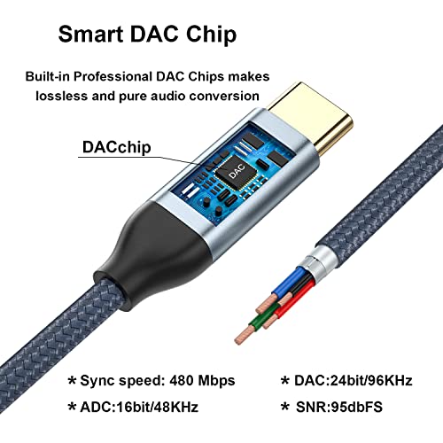 【Adattatore Audio Hi-Fi】Questo adattatore USB C a jack 3,5mm con l'ultimo chip DAC ad alta risoluzione, compatibile con un massimo di 32 bit / 96 kHz per garantire una trasmissione stabile e senza perdite del segnale audio, ti offre una qualità del suono ad alta fedeltà. L'elevata capacità anti-interferenza ti offre la migliore esperienza di ascolto.Funziona con quasi tutti i jack da 3,5 mm o porta USB-C.