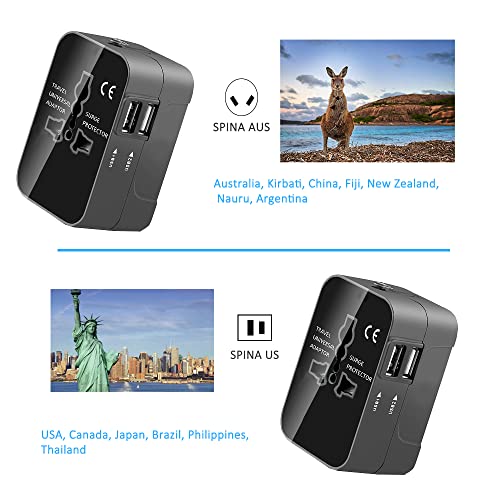 【CARICATORE VIAGGIO INTERNAZIONALE 】——Adattatore Universale da Viaggio utilizzabile in oltre 200 paesi: Italia, Germania, Spagna, Francia, USA, Australia, Canada, Regno Unito, Russia, Finlandia, Lituania, Repubblica Ceca, Irlanda, Grecia, Portogallo.