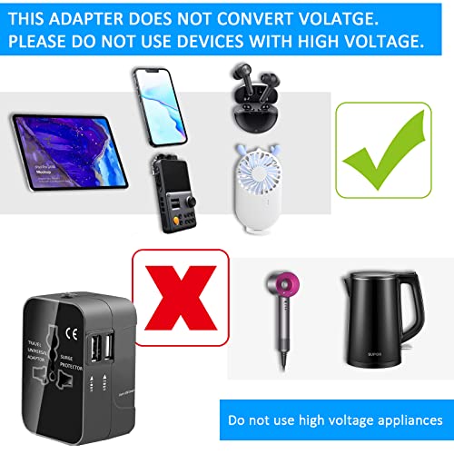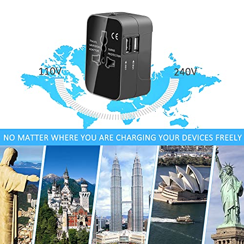 Adattatore Universale da Viaggio, Mengtech Caricatore Adattatore Universale 6A, 2 porta caricabatterie USB(5V/1A/2.1A), per Tablet Smartphone oltre 200 paesi (USA, UK, EU AUS) Nero