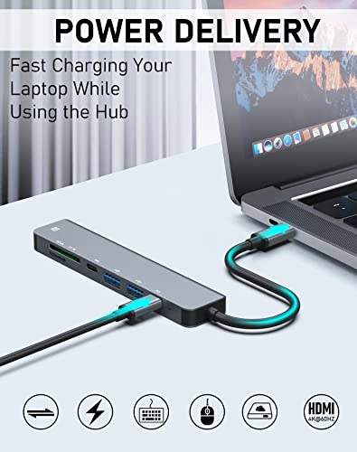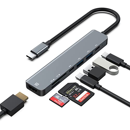 Hub USB C, adattatore hub USB-C 7-in-1, 4K 60Hz HDMI, ricarica veloce PD, 2 porte dati USB C, slot SD/TF Karten, per MacBook Pro/Air, iPad Pro/Air