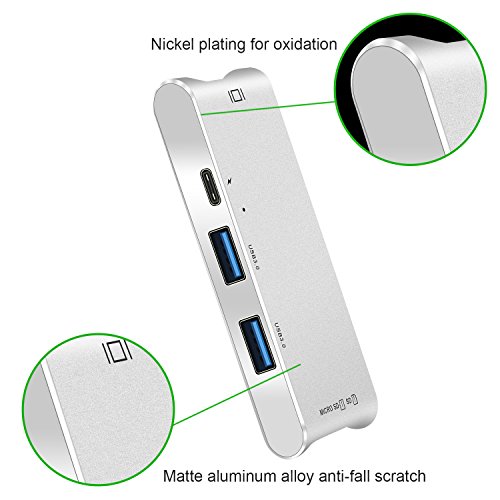USB Hub di tipo C, adattatore USB-C LUCKYDIY con HDMI 4K + 2 porte USB 3.0 + Consegna di alimentazione + lettore di schede per MacBook Pro 2016/2017 / Chrome Chrome / Altri dispositivi di tipo C