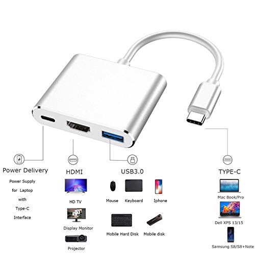 Adattatore da USB-C a HDMI (supporta 4K/30Hz), cavo convertitore 3 in 1 di tipo C per MacBook Pro, MacBook, Mac Pro, iMac, Chromebook e altri dispositivi USB 3.0 di tipo C