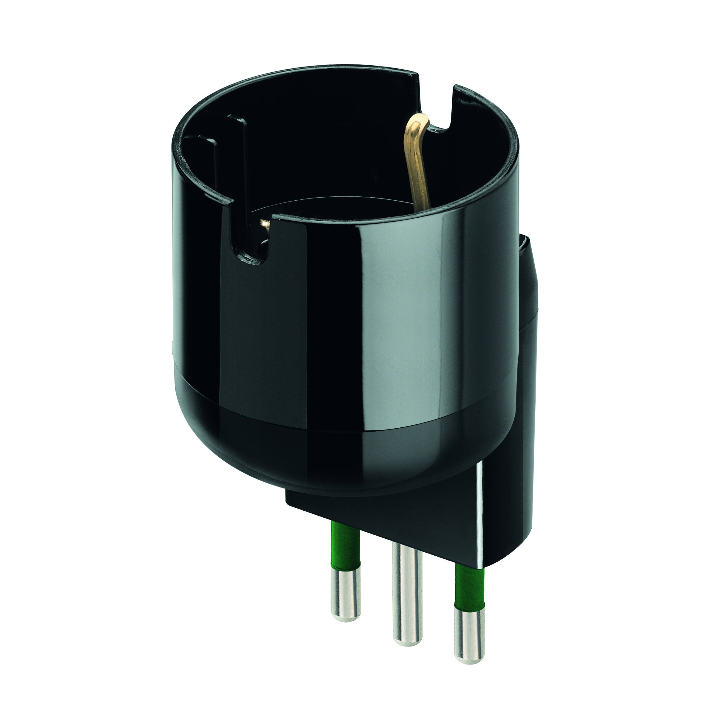 Spina 10A e presa shuko, Con struttura sfalsata,. Indicato per lasciare libero il meccanismo accanto alla presa in uso. Salvaspazio
