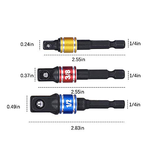 Dimensioni: La dimensione della testa del driver è 1/4 "3/8" 1/2", ciascuna viene fornita con un kit adattatore per cacciavite esagonale da 1/4". Diversi colori rappresentano dimensioni diverse e sono facili da identificare.
