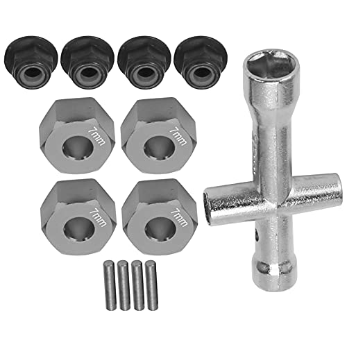 Set di Adattatori Esagonali per Ruota RC, Adattatore per Mozzo Esagonale Ruota da 12 Mm 7 Mm di Spessore M4 Dadi di Bloccaggio Flangia Set di Chiavi a Croce Compatibile con 1/10 RC Car(Titanio)