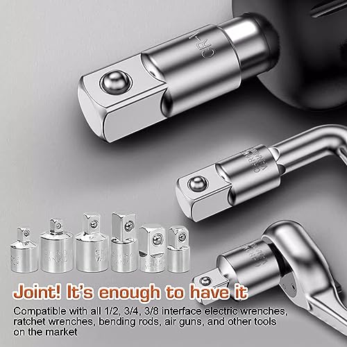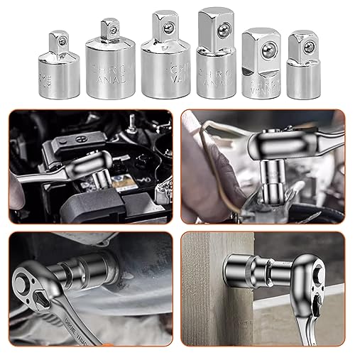 Set di Adattatori 6 Pezzi: HOMURY Socket Ratchet Converter 1/2" à 3/8", 3/8" à 1/2", 3/8" à 1/4", 1/4" à 3/8", 1/2" à 1/4", 1/4" à 1/2", Finitura Cromata Opaca Set di Adattatori per Bussole