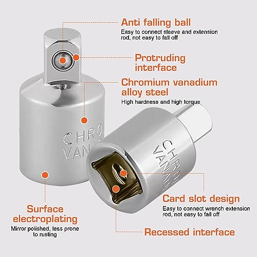 【Ampia Applicazione】Questo Set di Adattatori consente di passare senza problemi tra diverse dimensioni di unità, rendendolo uno strumento indispensabile sia per i professionisti che per gli appassionati di fai da te. Puoi facilmente utilizzare il tuo cricchetto e le chiavi a bussola con gli adattatori appropriati in varie combinazioni.