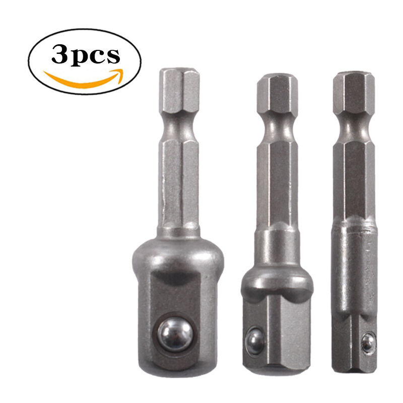 Acciaio al cromo-vanadio adatto per avvitatori a percussione per impieghi gravosi. Il cuscinetto a sfere a molla sulla testa tiene saldamente le prese. Adatto per cambio rapido 1/4" " sistemi di mandrini o direttamente nel mandrino del trapano. Cambia il tuo set di chiavi a bussola in un set di chiavi a bussola. Questo set è perfetto per il tuo trapano a percussione o trapano a colonna e ti consente di sostituisci il tuo cricchetto con un utensile elettrico. Questi adattatori pronti per l'impatto sono progettati per le applicazioni più impegnative (2.000 pollici di coppia /lb). L'esagono da 1/4"" il gambo si adatta a tutti i mandrini a cambio rapido e ai mandrini standard. Specifiche: Nuovissimo e di alta qualità. Materiale: Acciaio al cromo-vanadio Cr-V. 1/4""* 1/4""*50 mm--1/4"" Il gambo può essere convertito in 6,35 mm quadrati. 3/8"*1/4""*50mm--1/4""l'asta può essere convertito in quadrato da 9,53 mm. 1/2""*1/4""*50 mm--Il gambo da 1/4"" può essere convertito in quadrato