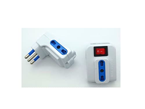 Set da 2 adattatori spina tripla Salvaspazio Spina 16a 3 Prese Bipasso con Interruttore
