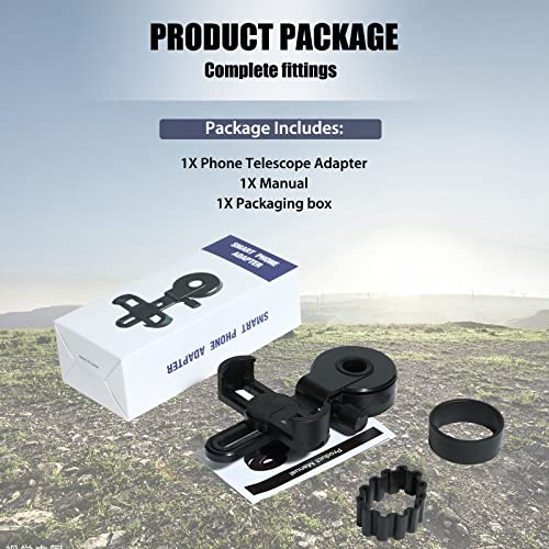 Diametro esterno oculare applicabile: questo adattatore per smartphone è adatto per portata: 38,5 - 43,5 mm/1,51 - 1,71 pollici. Si adatta alla maggior parte dei binocoli, monoculari. Per confermare questo adattatore, si adatta al tuo dispositivo o no.