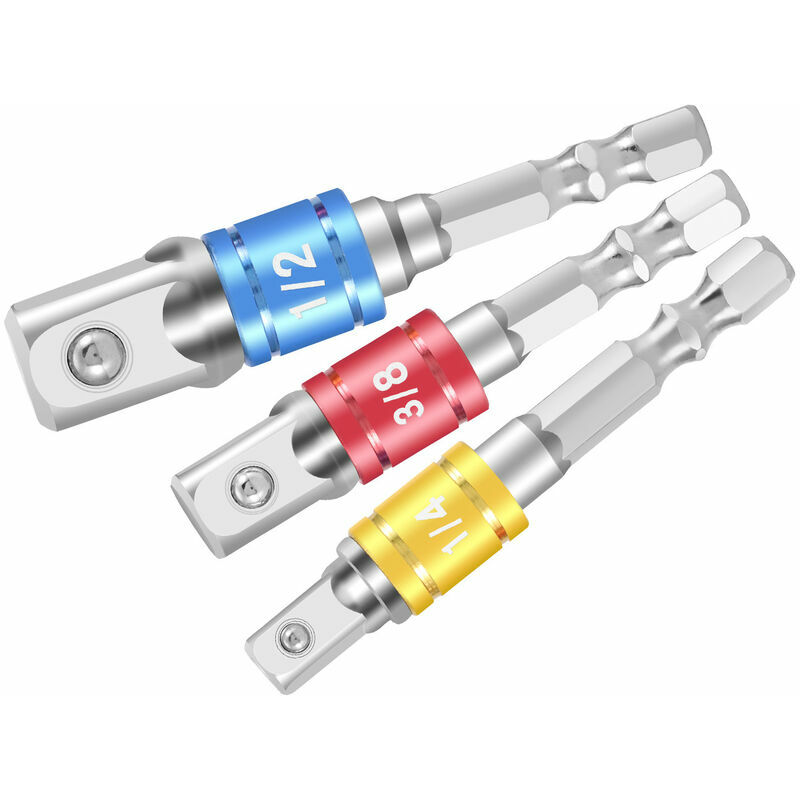 Caratteristiche: 【Multifunzione】 1 confezione include 3 diversi strumenti più utili, utilizzati nell'installazione di cacciavite pneumatico, cacciavite elettrico, trapano pneumatico, cacciavite manuale e altre strutture per lo strumento esagonale. È un buon accessorio per la conversione. 【Alta qualità】 Acciaio al cromo vanadio trattato termicamente super resistente per conduttori normali e di impatto. Durevole, duraturo e facile da usare, leggero, veloce, si collega a cacciaviti esagonali standard, seghe a tazza a impatto, punte a vanga e altro ancora. 【Adattatore universale per spina】 3 prese a impatto nere adattatori con set di anelli colorati - adattatore per unità da 1/4, adattatore per unità da 3/8 e adattatore per unità da 1/2 e ciascuno con un set di adattatori per cacciavite con codolo esagonale da 1/4. Collega prese a impatto/chiavi a bussola/prese per punte/punte per cacciavite per alimentare in modalità wireless. 【Porta punte per cacciavite magnetico】 Adattatore per