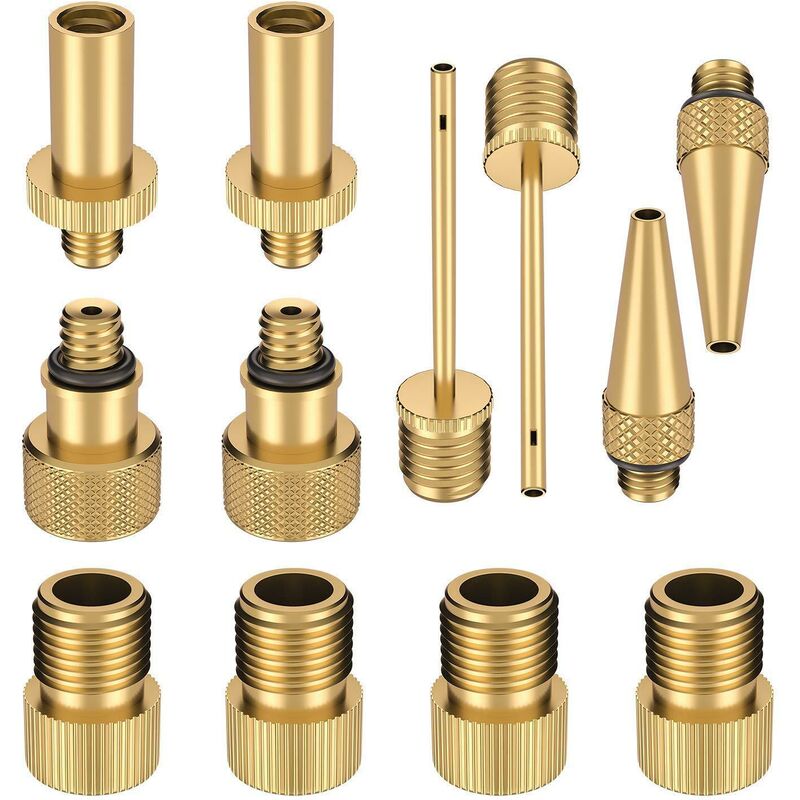 Per tutte le tue esigenze - con un'ampia gamma di adattatori puoi adattare una valvola non adatta a una pompa di benzina o compressore di una stazione di servizio. Uso previsto Compressore automatico - Dunlopventil (DV), Presta Valve, Expansion Valve (BV), Sclaverandventil (SV), Presta Valve Open => Schrader / Automotive Valve (AV). Quindi non devi più preoccuparti di una pompa inadatta. Valvole per bici per impieghi gravosi: valvole per bici in rame - Tutti questi accessori per bici sono realizzati in rame estremamente durevole e resistente alla corrosione. La lavorazione di alta qualità renderà questo set un compagno di lunga durata. Facile da trasportare: questo set di ugelli dell'aria del compressore è di piccole dimensioni e occupa poco spazio. È molto comodo andare ovunque. SICURO E SEMPLICE: Il pacchetto include 12 adattatori per ugelli dell'aria, 3 modalità consentono di realizzare valvole che non funzionano con compressori, stazioni di servizio, biciclette o mini pompe. La