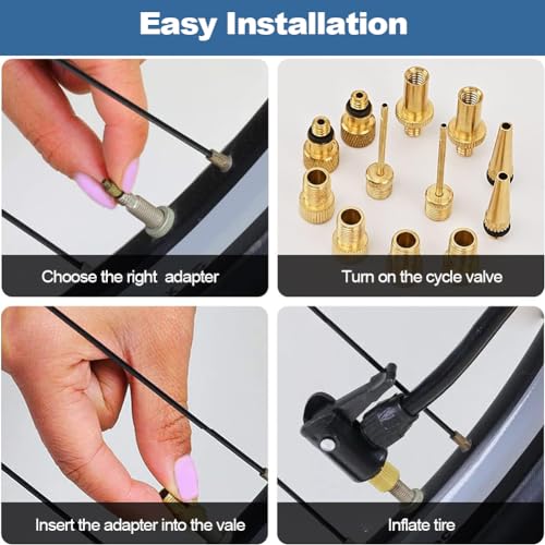 【Ampiamente usato】L'adattatore della valvola della bicicletta è adatto a tutti i tipi comuni con valvole, come mountain bike, bici da strada, bici da fitness, compressori auto, valvole della bicicletta francese, ecc. L'ago della valvola della pompa a sfera è adatto anche per calcio, pallavolo, basket, cuscino d'aria, ecc.