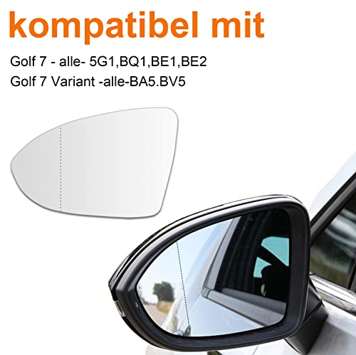 Adatto per Golf 7, specchietto destro lato passeggero, riscaldabile, asferico con piastra di supporto (sinistra)
