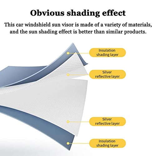 ☛ 【Design multistrato】 Questa visiera per parabrezza per auto è realizzata con diversi materiali insieme. Dimensioni ridotte, materiale morbido, il parasole del parabrezza anteriore può essere ripiegato nel bagagliaio dell'auto. Il design pieghevole lo rende più comodo da trasportare. non occupa molto spazio.