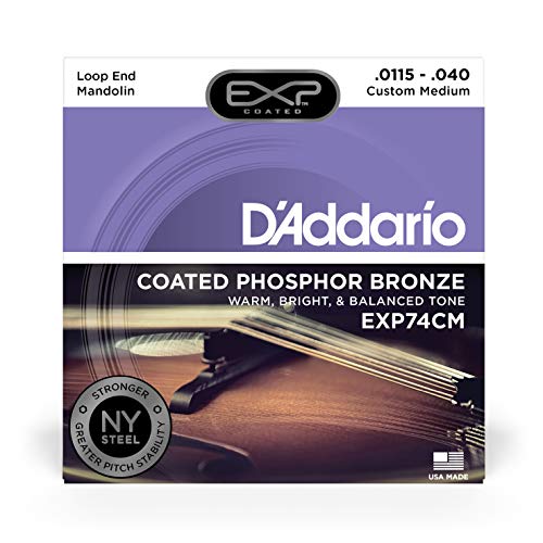D'Addario EXP74CM Coated Phosphor Bronze Mandolin Strings, Custom Medium, 11.5-40