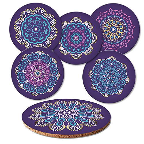 ADDIES &apos Sottobicchiere, 6 pezzi set diMandala con 6 diversi bellissimi disegni spirituale, in scatola regalo trasparente e retro in sughero, circa, motivi della buona notte