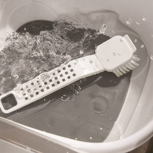 Addis Premium Soft Grip Washing Up Dish Brush with Scraper, White & Grey Spazzola per lavapiatti con Impugnatura Morbida, con Raschietto, Colore: Bianco e Grigio, Taglia Unica