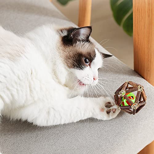 ADDLIVE 2 Pezzi Giocattoli Per Gatti Palla con Campana, 2 Pezzi Giocattoli con Erba Gatta Palla, Matatabi Per Gatti Giochi, Palla di Erba Gatta Naturale, Giocattolo da Masticare Per Gatti, 6.5 cm