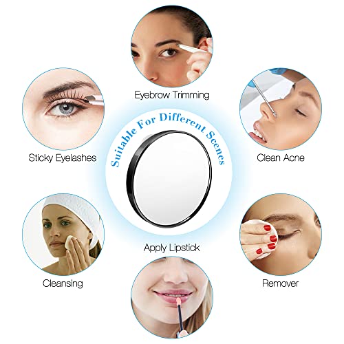 ADDLIVE Specchio con Ingrandimento di 15X con Ventose, 2 Pezzi Specchio Ingranditore a Ventose, Specchio Trucco con Ventose per Trucco Precisa Depilare Sopracciglia, Eliminare Punti Neri e Acne