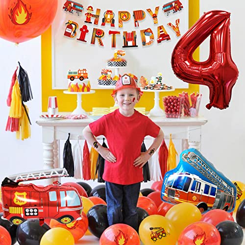 Addobbi Compleanno Bambino 4 anni Camion dei Pompieri, Palloncini Compleanno 4 anni Palloncino Compleanno Vigile Del Fuoco, Decorazioni Compleanno Bambino per Bambini Ragazzo 4 anno