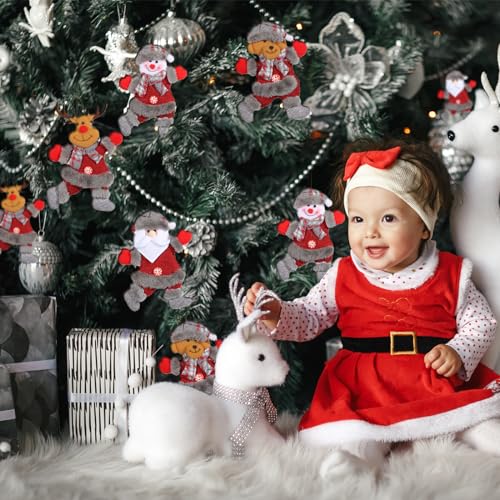 Addobbi Natalizi da Appendere,LYQQY Pezzi Decorazioni Natalizie Appese Con cordino Ciondoli Natalizi Peluche Pendenti Babbo Natale Pupazzo di Neve Renna Bambola Per Festa di Natale, Albero di Natale