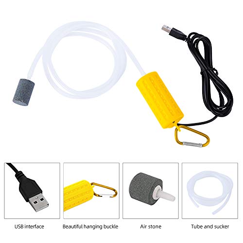 Adeeing Portatile Mini USB Acquario Pesce Serbatoio Ossigeno Pompa Aria Mute Risparmio Energetico Forniture Accessori, Giallo