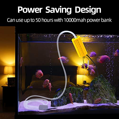 Basso consumo energetico: il consumo energetico di questa pompa di ossigeno USB è di soli 0,2 W, lunga durata, alto risparmio energetico. Se lo si collega a una fonte di alimentazione da 10000 mAh, può durare circa 50 ore e funziona comunque in modo efficiente.