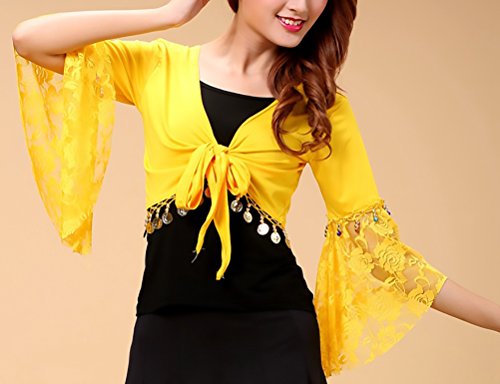 Bolero Donna Danza Del Ventre Ballo Latino Costume Maniche Tromba Pizzo Ragazza Abbigliamento Fashionable Cucitura Con Monete Top Stola Pancia Danza Costumi