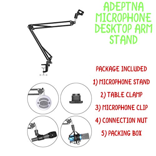 ADEPTNA - Braccio per microfono professionale e regolabile, in acciaio resistente, supporto per microfono, asta con braccio a forbice