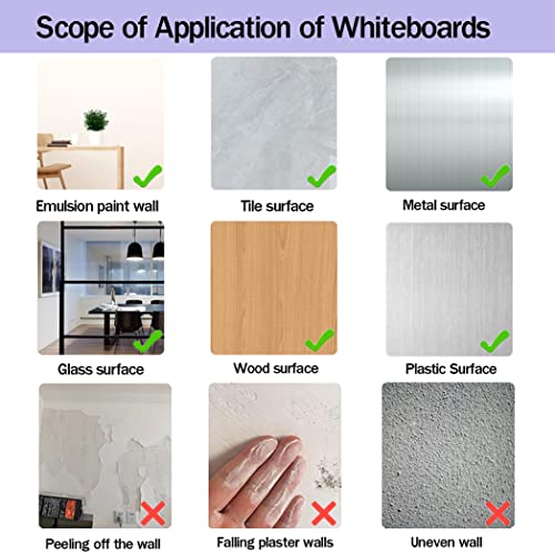 【Più Piatto e Più Liscio】L'installazione della lavagna bianca è più facile, migliore e veloce e può essere eseguita da una sola persona. Il retro della Foglio magnetico bianco cancellabile incollata non produce bolle d'aria, la superficie è più liscia e piatta e la scrittura è più scorrevole.