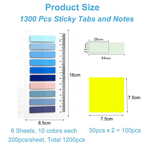 1300 pz note adesive, schede di indice appiccicoso, schede di annotazione del libro, etichette colorate per raccoglitori, libri, carta, note, cartelle