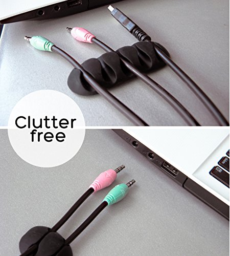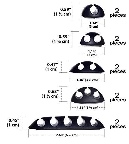 Set da 10 Clip adesive per cavi by Smart Storage | Pratico sistema di gestione cavi e fili per scrivania | Cavi per Computer, caricatori, Mouse, iPhone, casa, ufficio o auto | 5 misure, Nero