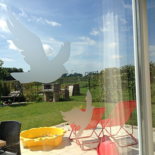 22 adesivi anticollisione per uccelli - Per evitare che gli uccelli urtino il vetro - Kit completo di cui 22 uccelli, spray e una spatola - Colore: Traslucido smerigliato