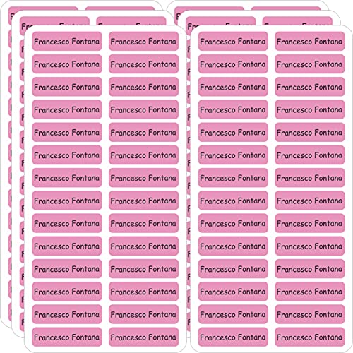 Adesivi con nome per bambini, libri e materiale scolastico - 36x7 mm - 300 pezzi per bambini - penne, astuccio, regole - sfondo rosa - stampa individuale