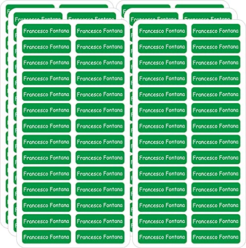 Adesivi con nome per bambini, libri e materiale scolastico - 36x7 mm - 300 pezzi per bambini - pennette, astuccio, regole - sfondo verde - stampa individuale