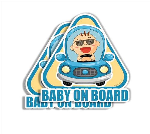 Adesivi Baby on board, avviso bimbo a bordo per auto, in vinile, impermeabile, anti graffio, anti UV, 2 pz. colore Azzurro