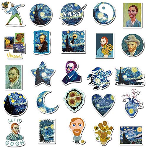 Van Gogh, adesivi per bottiglie d'acqua, astratte per computer portatile, adatti per bambini, ragazze, adolescenti (40 pezzi)