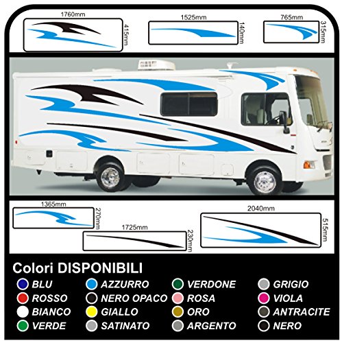 Adesivi CAMPER grafica in vinile decalcomanie strisce CAMPER grafica Set CAMPER VAN ROULOTTE Motorhome - KIT COMPLETO - grafica 01 (COLORI COME DA FOTO)