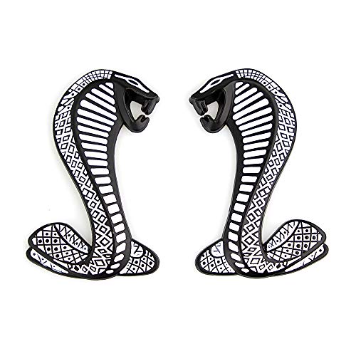 2 adesivi 3D Cobra serpente emblema parafango parafango logo Shelby premium (bianco con contorno nero)
