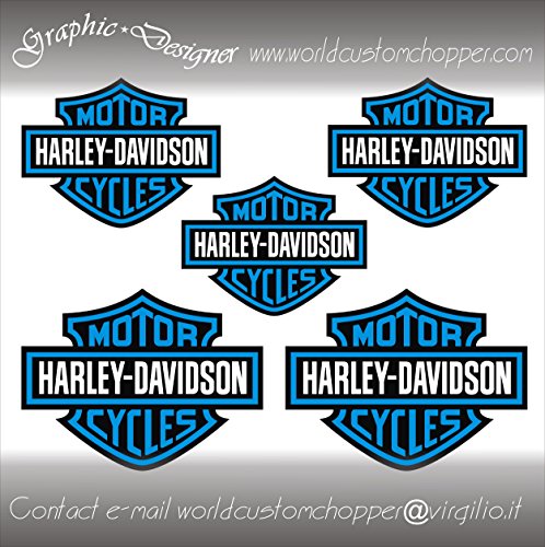 5 adesivi decal stickers bar and shield harley davidson casco moto custom bandit (blu)